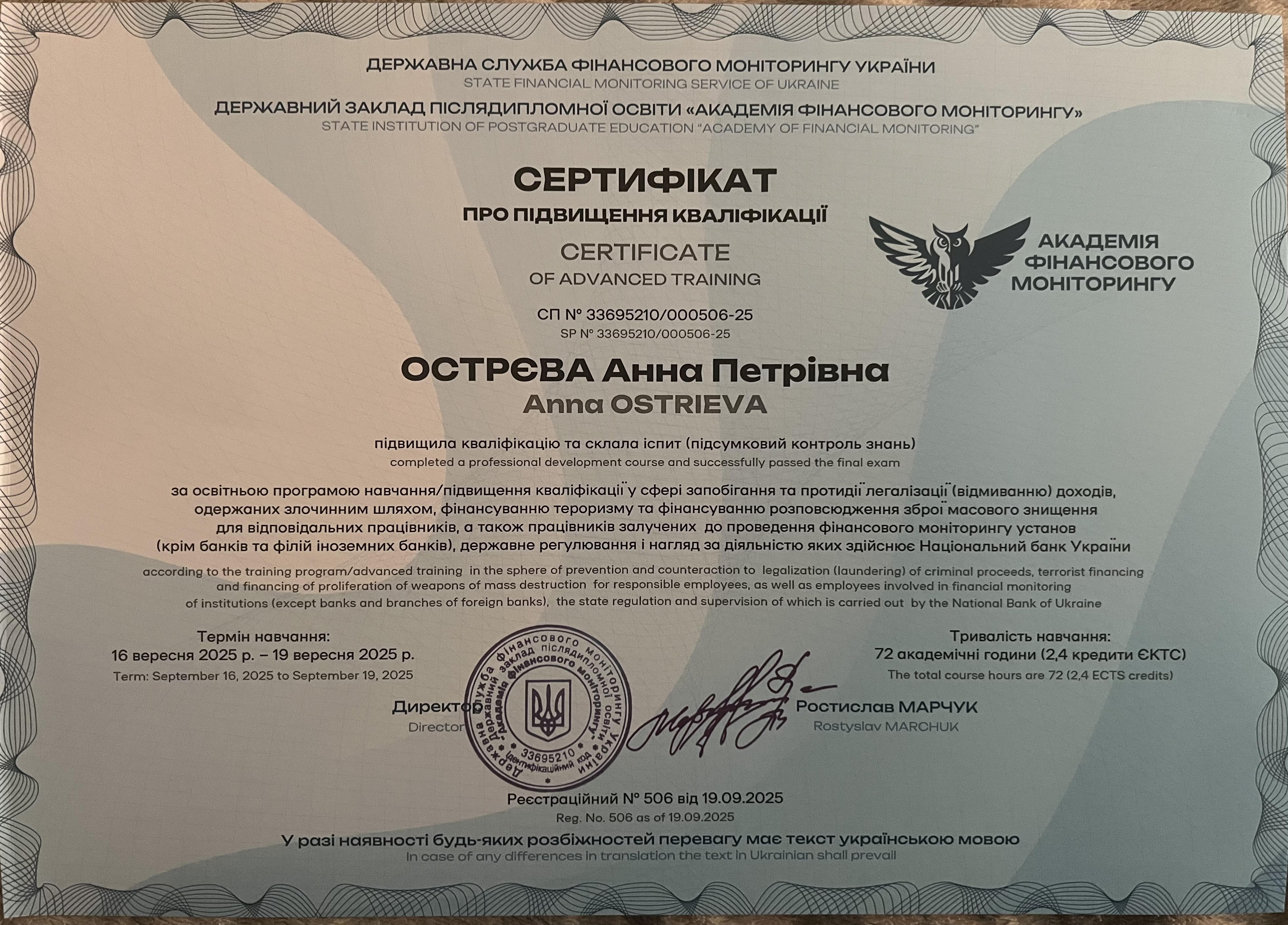 свідоцтво про підвищення кваліфікації фін моніторинг 2022 (розміщено )